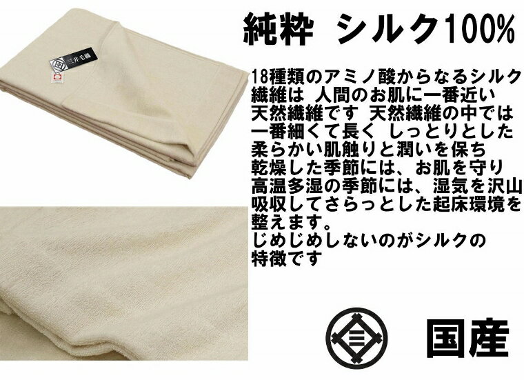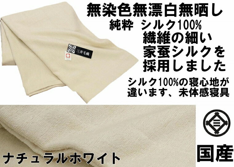 【1枚】 セミダブルサイズ 純粋 シルク 100% タオルケット 【ロイヤル1】 公式三井毛織国産 ナチュラルホワイト色 送料無料 TK